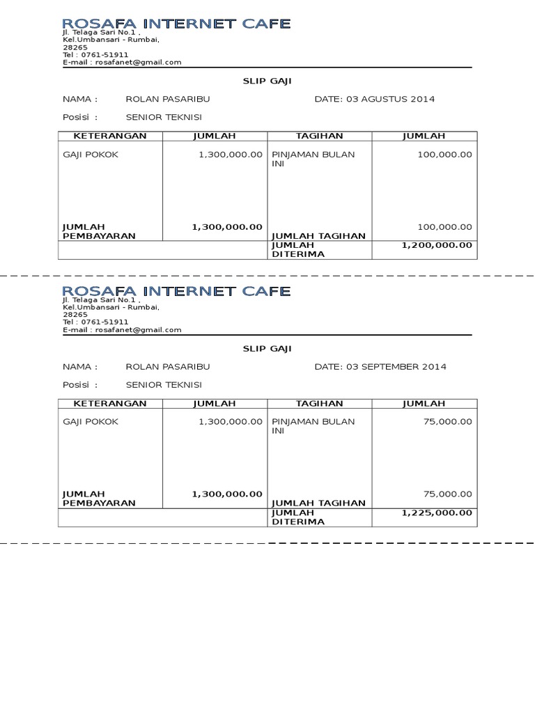 Bagi kamu yang mulai merintis usaha dan dengan jumlah pekerja yang semakin banyak, cepat atau lambat pasti akan membutuhkan slip gaji. Slip gaji adalah bukti otentik atau bukti resmi penerimaan gaji atau income dari pemberi kerja kepada pekerja atau pegawai. Dapatkan contoh slip gaji karyawan, cara membuat dan download file nya di sini. Pt parayang saleware jalan cempaka putih, 08, jakarta. Informasi umum ini biasanya terdapat di bagian kop atau paling atas dari. Mulai dari pengertian slip gaji, manfaat slip gaji, cara membuat membuat slip gaji dan contoh slip gaji karyawan. Jadi ulasan berikut ini bisa jadi pembuka. Surat keterangan pembayaran gaji nomor : Meskipun demikian, format yang dibuat tentu tidak jauh berbeda antara perusahaan satu dengan perusahaan yang lainnya. Slip gaji karyawan di sebuah perusahaan memiliki format dan. Walaupun begitu, slip gaji ini memiliki kekuatan hukum dan bahkan bisa jadi jadi dokumen penting untuk keperluan formal. Dinas kebudayaan dan pariwisata kota bandung jalan delima merah raya no. 1 bandung contoh slip gaji untuk kredit motor.